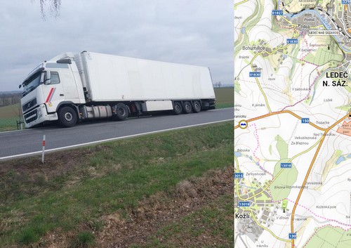 Dnes před devátou hodinou dopoledne, přijali policisté oznámení o havarovaném nákladním vozidle na silnici mezi obcemi Ledeč nad Sázavou a Hněvkovice u obce Kožlí.