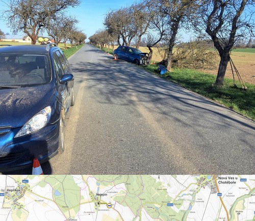 Ve čtvrtek 9. dubna krátce před osmou hodinou ráno vyjížděli policisté k dopravní nehodě, ke které došlo v katastru obce Nejepín. Čtyřiačtyřicetiletý řidič jedoucí ve směru na obec Klouzovy s osobním vozidlem Peugeot začal předjíždět jedoucí autobus před ním ve chvíli, kdy již byl předjížděn osobním vozidlem Renault, a došlo k bočnímu střetu mezi vozidly. Vozidlo Renault bylo po střetu odmrštěno mimo komunikaci, kde přední částí narazilo do stromu.