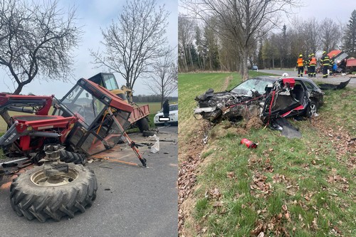 Včerejší vážná dopravní nehoda traktoru. Po srážce automobilu a traktoru zůstala neprůjezdná komunikace.