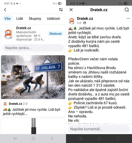 Policisté proto dalším operativním šetřením zjistili, kdo je majitelem firmy a tohoto majitele kontaktovali kvůli domluvě na způsobu převzetí balíku. Balík kolem půl deváté večer policisté osobně předali oprávněné osobě, která zastupuje firmu. Další šetření ve věci policisté neprováděli. Balíky zřejmě vypadly z vozidla, které tyto balíky převáželo - viz zpráva, která se objevila v této souvislosti o pár dnů později na Facebooku. Jaký osud potkal zbývající na silnici popadané balíky se lze pouze domnívat. Foto ke zprávě na FB pošlu na WhatsApp.