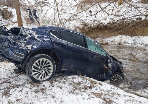 Řidič vozidla Lexus vyjel před půl desátou dopoledne ze silnice, automobil sjel až do potoka, kde zůstal stát.
