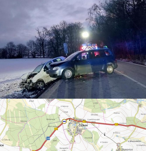 V pondělí 5. ledna krátce po čtvrté hodině odpoledne přijali policisté na integrovaném operačním středisku oznámení o dopravní nehodě, ke které došlo mezi obcemi Čížkov a Leskovice. Dvaapadesátiletý řidič jedoucí s osobním vozidlem Volkswagen zřejmě vlivem nepřiměřené rychlosti po projetí levotočivé zatáčky vyjel na krajnici, následně zpět na komunikaci a přejel do protisměru, kde se střetl s protijedoucím automobilem Fiat.
