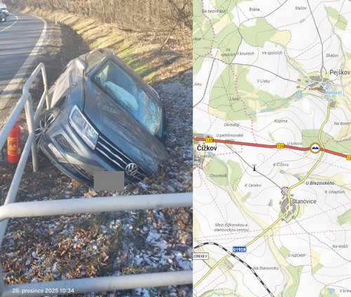 Vyjel mimo vozovku, kde narazil do svodidel, o která se zarazil a s vozidlem převrátil do silničního příkopu. Ke zranění osob nedošlo. Policisté místo nehody ohledali a zadokumentovali. Přítomnost alkoholu u řidiče vyloučili. Vlivem dopravní nehody došlo k předběžné škodě za devadesát tisíc korun. Dopravní nehoda byla s řidičem vyřešena na místě uložením pokuty v příkazním řízení.