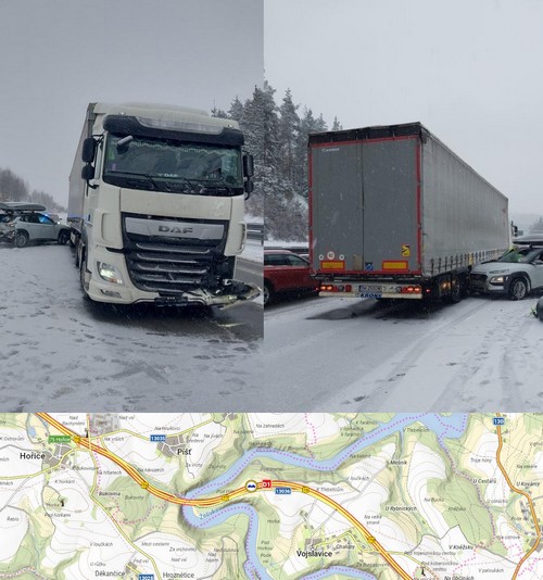 Zbytečná nehoda na dálnici D1. Policisté na integrovaném operačním středisku Krajského ředitelství policie kraje Vysočina přijali 10. ledna krátce po deváté hodině dopoledne oznámení o dopravní nehodě, která se stala na 77,3 kilometru dálnice D1 ve směru jízdy na Prahu. Řidič projížděl v pravém jízdním pruhu s nákladní jízdní soupravou složenou z nákladního vozidla a návěsu a nepřizpůsobil rychlost jízdy zejména svým schopnostem, vlastnostem vozidla a předpokládanému stavu pozemní komunikace. Z tohoto důvodu nestačil včas zpomalit za před ním jedoucím osobním vozidlem Hyundai Kona, jehož řidič se snažil při jízdě v pravém jízdním pruhu na zasněženém povrchu vozovky zpomalit a vyrovnat vznikající smyk.