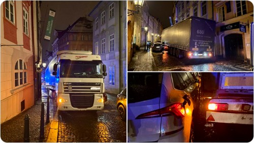 Při pokusu o návrat poškodil jedno zaparkované vozidlo. Kamion se díky koordinaci všech zasahujících podařilo odnavigovat zpět.