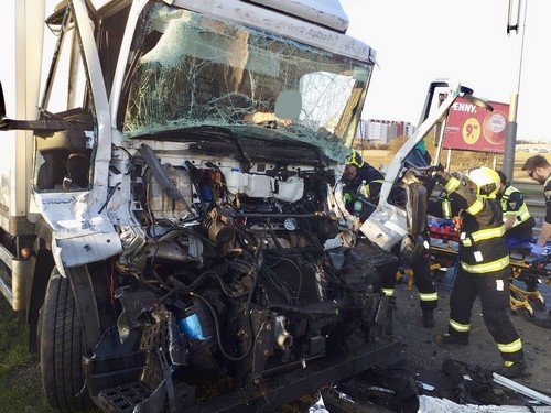 Řidiče dodávky hasiči museli vyprostit pomocí vyprošťovacího zařízení. Následně byl předán do péče ZZS.
