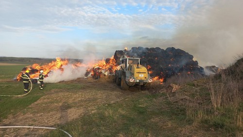 Nedaleko obce Přehořov u Tábora, včera ve čtvrtek 2. dubna 2026 vpodvečer, zasahovala profesionální jednotka hasičů ze stanice Soběslav a dobrovolné jednotky Přehořov a Tučapy u požáru balíků slámy.