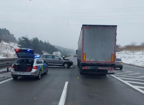 AKTUALIZACE ve 12:30 - Při nehodě na dálnici, dle současných informací, nedošlo ke zranění osob. Policisté provedenou dechovou zkouškou u řidičů požití alkoholu nezjistili.