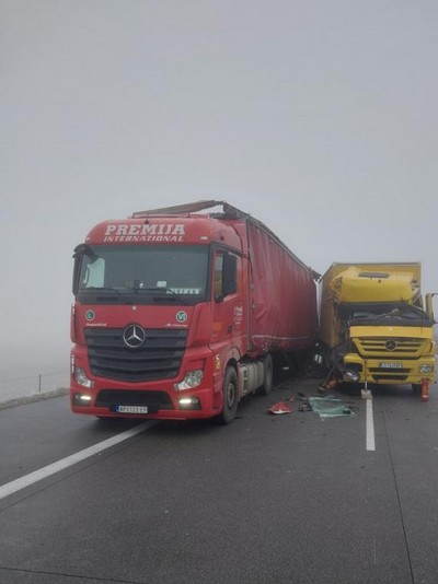 AKTUALIZACE ve 12:52 - Doplňující informace k dopravní nehodě na dálnici. V místě se střetla dvě nákladní vozidla. V tvořící se koloně došlo k další dopravné nehodě, a to ke střetu dodávky s nákladním vozidlem. Tedy jde o dvě samostatné nehody. Při první nehodě došlo ke zranění jedné osoby. Dechové zkoušky byly u všech řidičů negativní. Místo je stále průjezdné jedním jízdním pruhem a tvoří se kolona. Dbejte zvýšené opatrnosti.