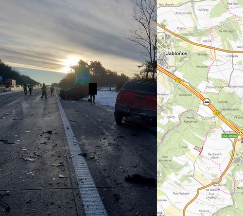 Policie ČR - Doplnění: v místě se střetlo pět vozidel, omezený je levý i pravý jízdní pruh. V místě se tvoří kolony. Bude se jednat o dvě dopravní nehody. Dálniční policisté jsou na místě a po zadokumentování se budou ve spolupráci se zasahujicími hasiči uvolnit vozidla z levého jízdního pruhu. Zatím není hlášeno žádné zranění.