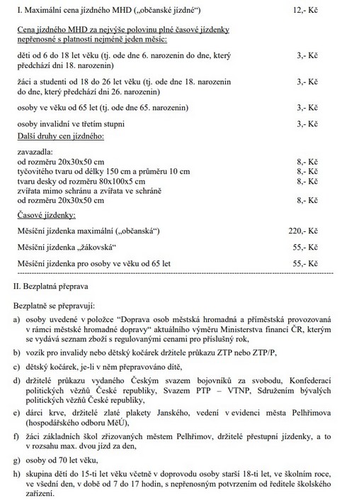 Ceník jízdného městské hromadné dopravy Pelhřimov (dále jen MHD).
